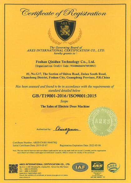 熱烈祝賀佛山市奇斯盾科技有限公司成功申請質量管理體系認證ISO9001