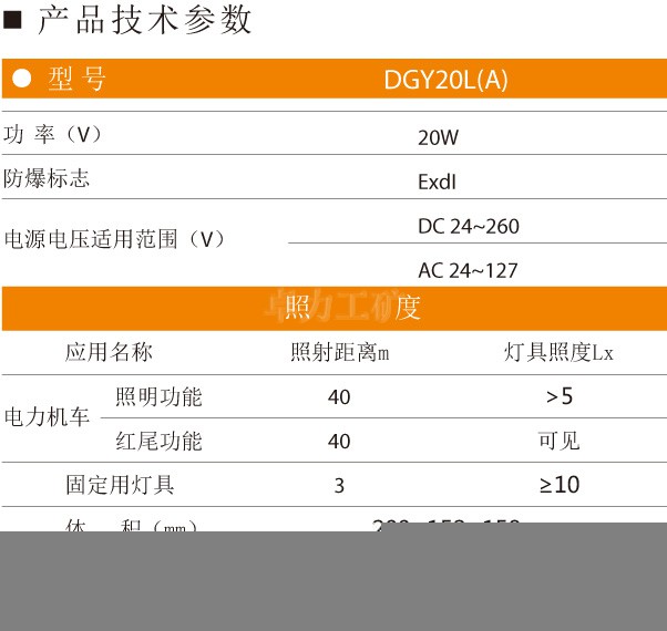 該燈采用高亮度、高節電、長壽命大功率發光二級管制造,它的最大特點是輸入電源電壓范圍非常寬,而且輸入的電源交直流均可使用,它主要應用于2.5噸、5噸、8噸、12噸、18噸防爆蓄電池電機車作投光照明之用。同時也可用36V到127V交流電作巷道、采掘工作面的照明。該燈總輸入功率為20W但其照度是40W白熾照明燈兩倍,壽命是白熾照明燈的50倍!所以說這種LED照明燈不僅節電而且還免去經營更換燒損燈泡的麻煩,該燈裝有紅色發光管,當白燈滅時紅燈即亮。
